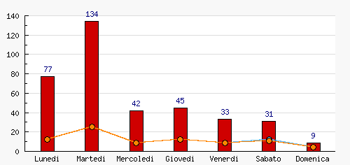 | Martedi | 134 | 36.12% | +57  | 25 | 30.12% | +13  | 25 | 30.49% | +13  |